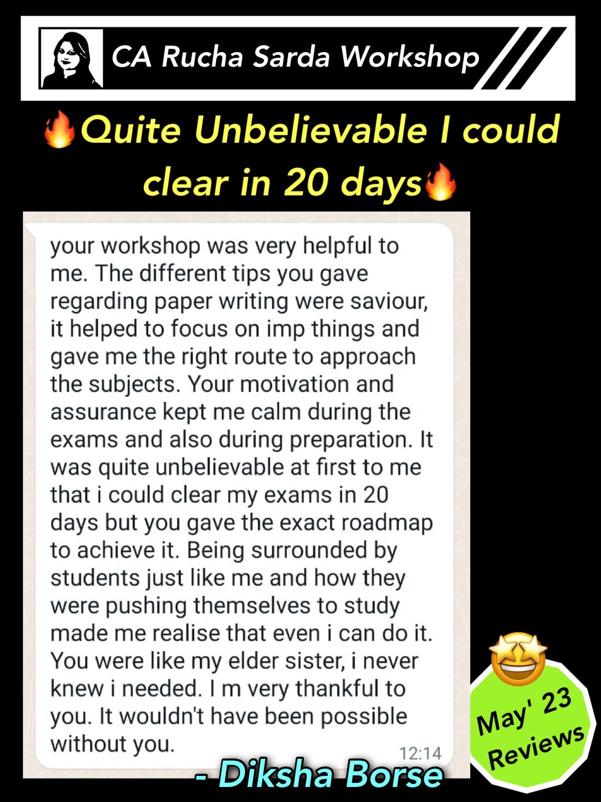 Well, there are loads of students of CA Rucha Sarda who have cleared CA exams in less than 30 days inspite of being underprepared.